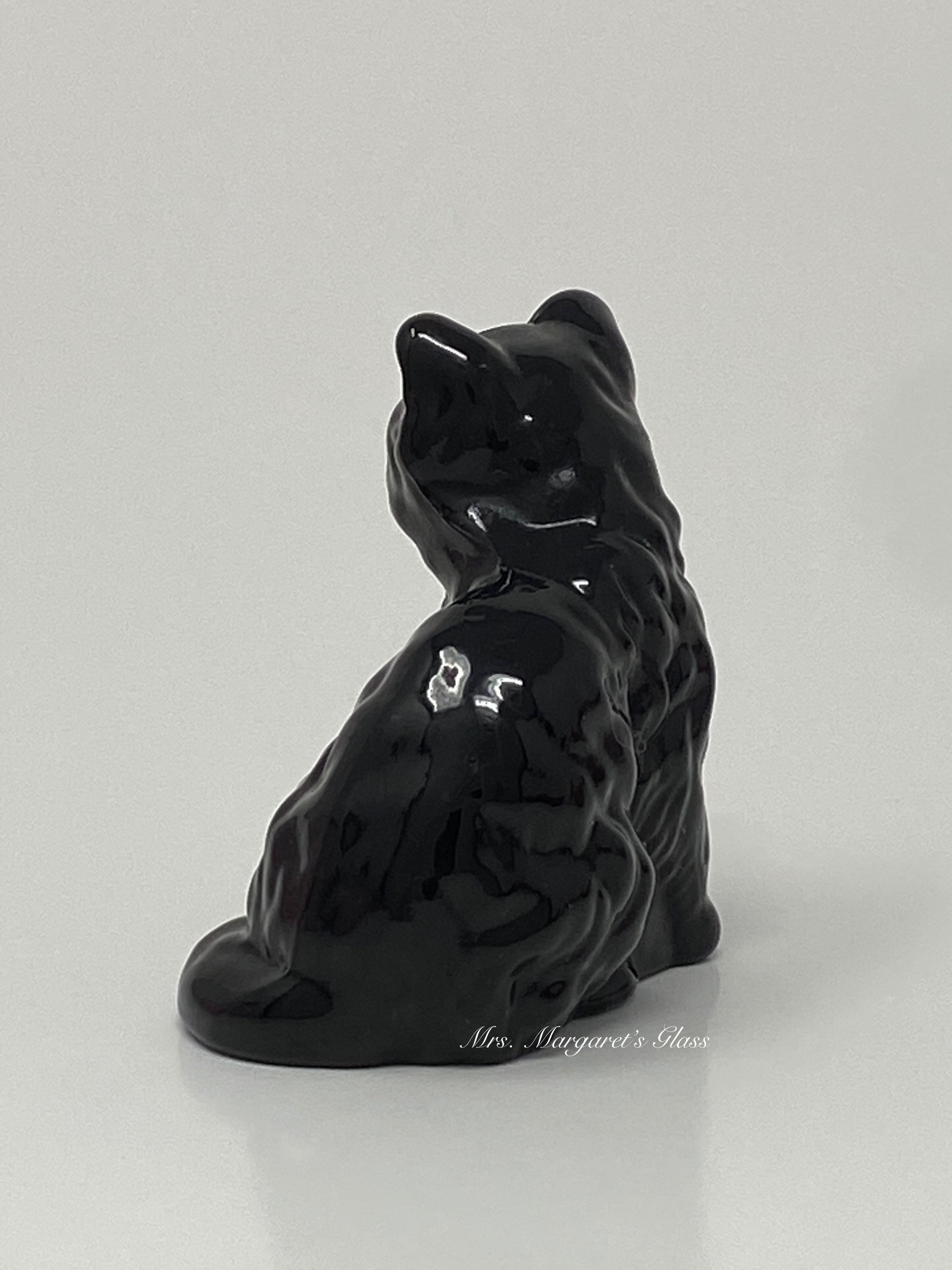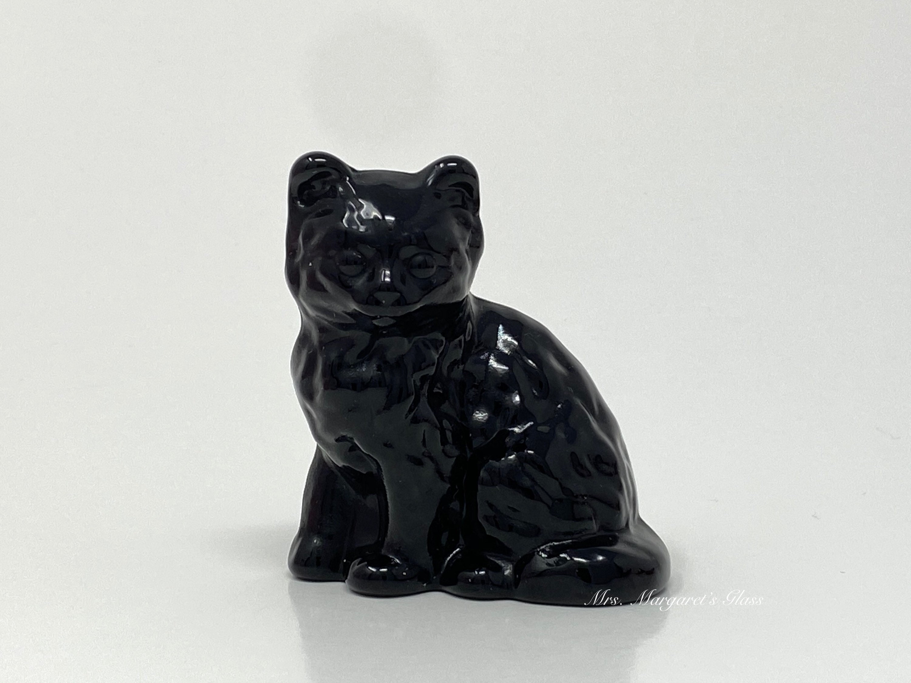 New. Mosser Glass Milk Black Kitten Cat Figure. Measures 3.25” high. Hand pressed by Glass Artisans in Cambridge, Ohio, USA.